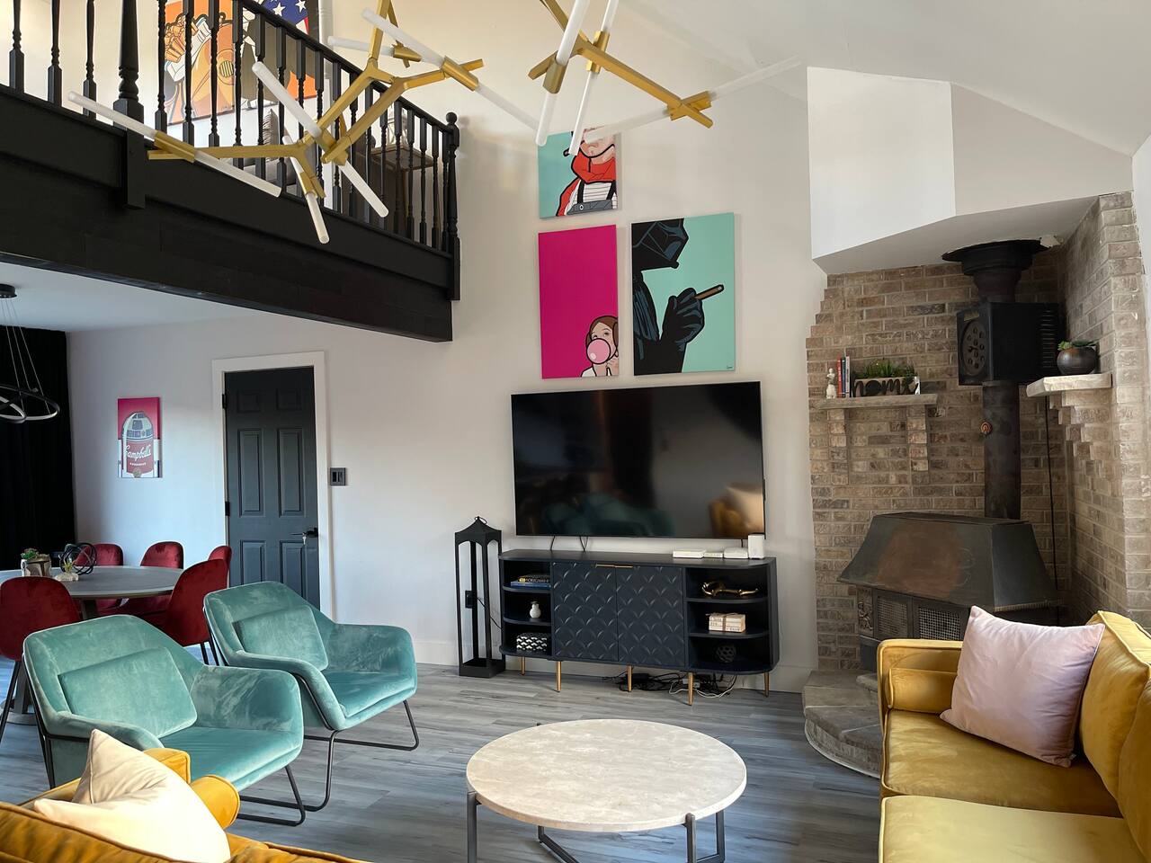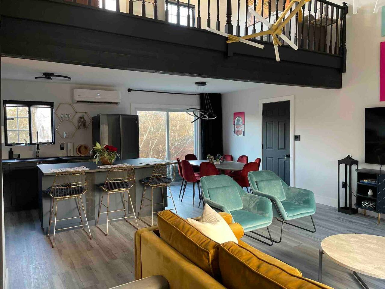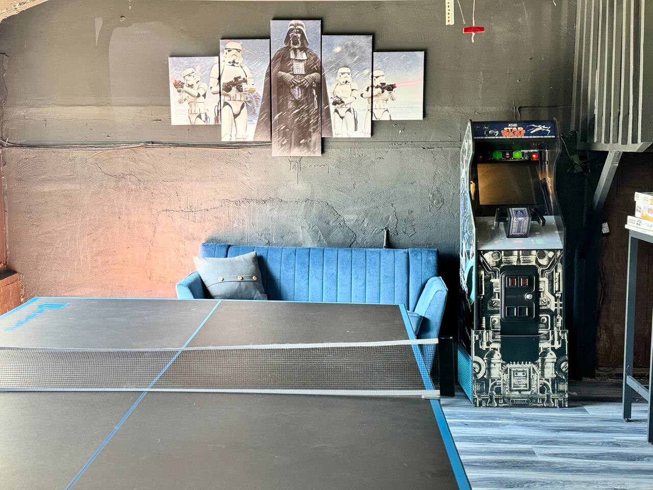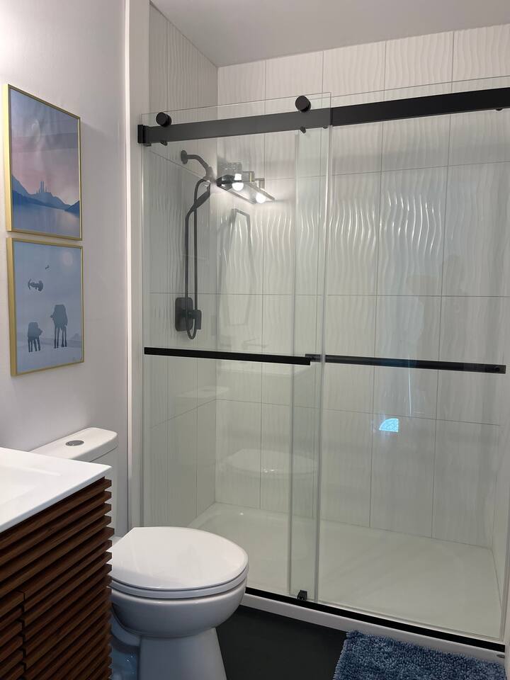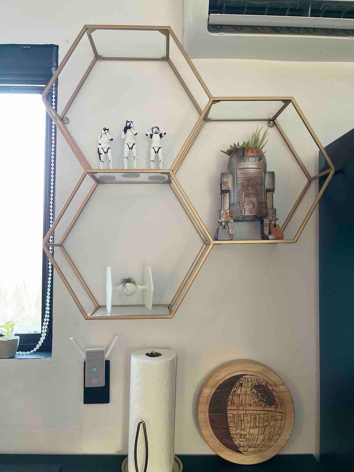 A touch of Star Wars in every room! It was hard for Lord Vader and Leia to give up creative control here, but this is where they come together..right here in Emerald Lakes - convenient to all the Poconos has to offer. New kitchen, new bathrooms! Primary bedroom is on the first floor, and has a king sized bed. Two additional bedrooms upstairs, one also with a king sized bed, the other a queen. Open loft area on same level has a queen sized pull-out sofa.