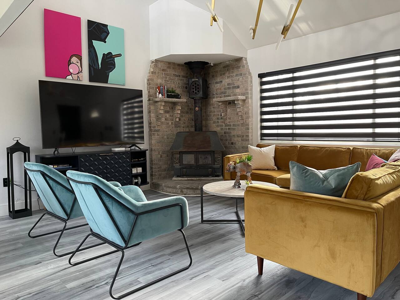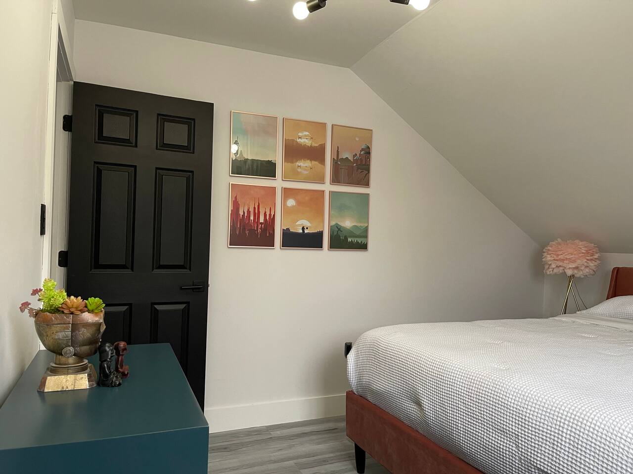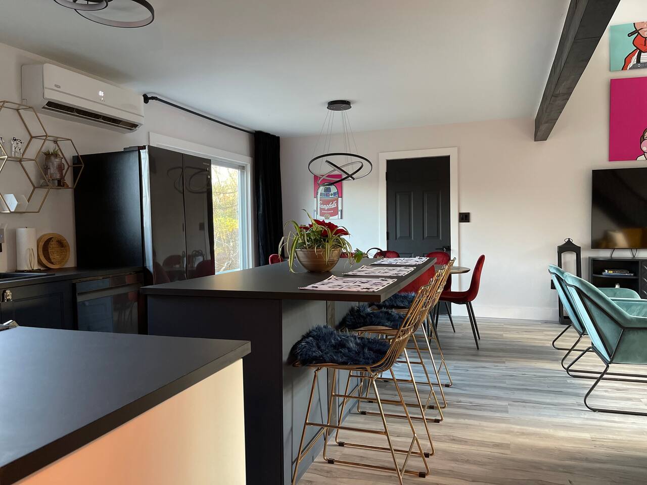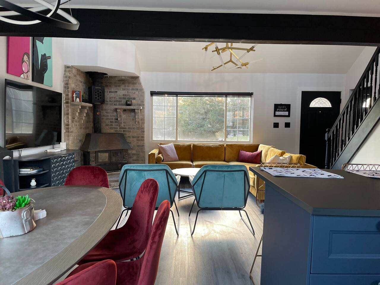 A touch of Star Wars in every room! It was hard for Lord Vader and Leia to give up creative control here, but this is where they come together..right here in Emerald Lakes - convenient to all the Poconos has to offer. New kitchen, new bathrooms! Primary bedroom is on the first floor, and has a king sized bed. Two additional bedrooms upstairs, one also with a king sized bed, the other a queen. Open loft area on same level has a queen sized pull-out sofa.